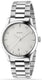 Stainless steel case with a stainless steel bracelet. Fixed stainless steel bezel. Black dial with silver-tone hands and Gucci charms hour markers. Dial Type: Analog. Date display at the 6 o'clock position. Quartz movement. Scratch resistant sapphire crystal. Pull / push crown. Solid case back. Case size: 27 mm. Round...